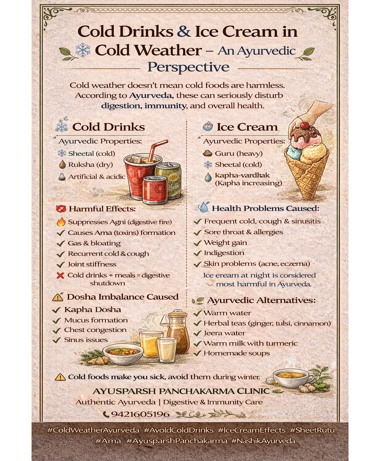 Cold drinks Ayurveda, Ice cream in winter, Sheet Rutu diet, Kapha disorders, Weak digestion Ayurveda, Ama toxins, Winter immunity Ayurveda