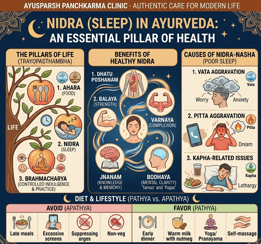 #WorldSleepDay #NidraInAyurveda #HealthySleep #AyurvedaLifestyle #HolisticHealth #NaturalWellness #AyusparshPanchakarma #NashikAyurveda