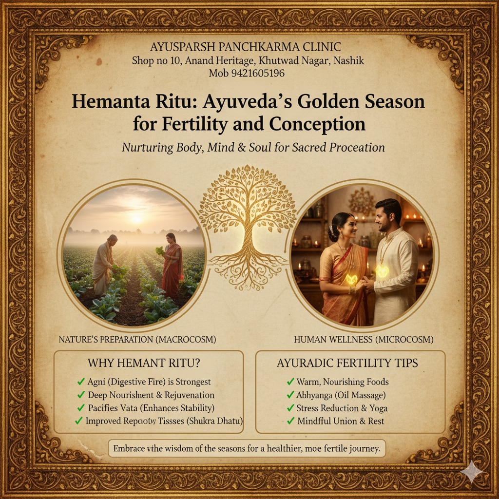 #HemantRutu #AyurvedaFertility #ShukraDhatu #AyurvedaForWomen #WinterWellness #AyurvedaTips #PanchakarmaNashik #AyusparshPanchkarma